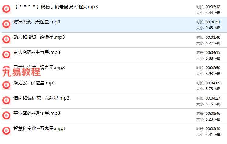 青禾老师 为你揭秘手机号码识人绝技录音,内容比较短小,总的才有30多分钟录音,害怕吃亏上当的请不要下载!注意,录音已经进行了二次压缩,需要解压才能听课。