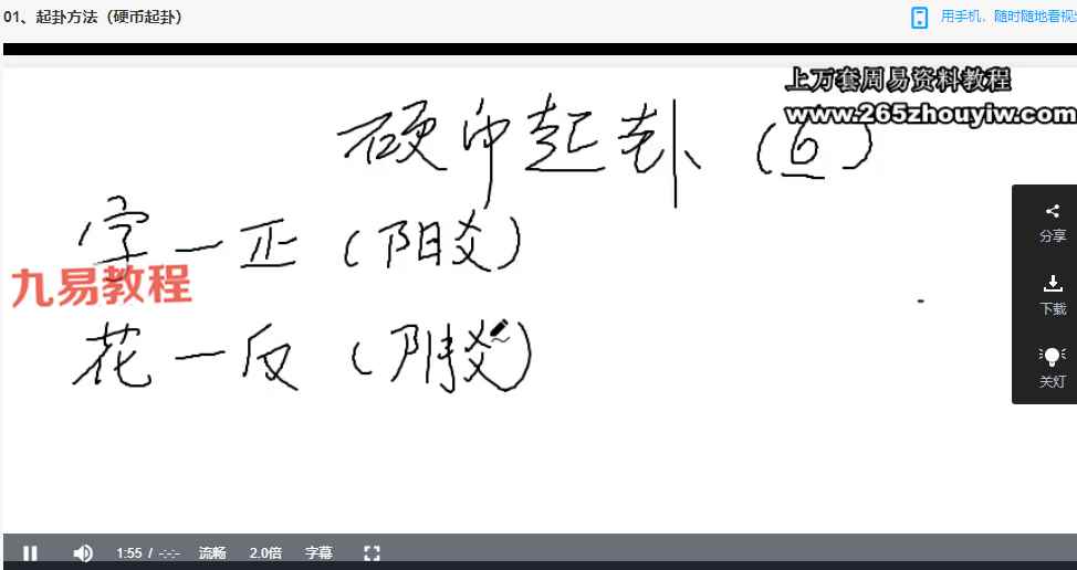 | ├──01、起卦方法(硬币起卦).mp4 30.32M
