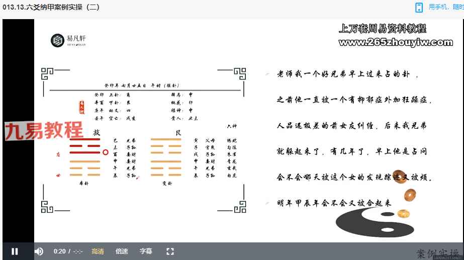 易凡轩 秋季班 六爻纳甲-【18节】视频,以较为简短直接的思路带你学会玩六爻断卦,并有案例实操拆解。