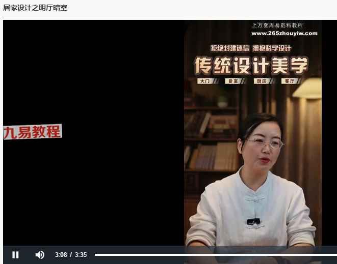 芯玥居家美学设计视频9集,讲解室内的各处布置和设计,从而达到符合风水学和美学的要求。注意:没有字幕,是直播讲解,介意的请不要下载。
