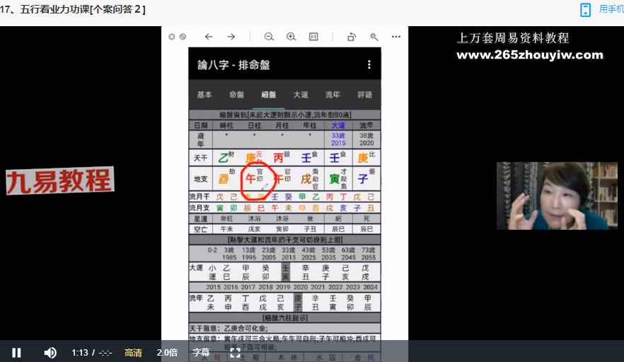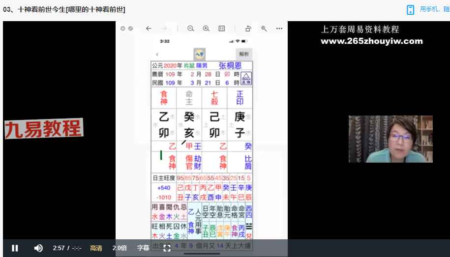 八字应用篇~前世今生(贺侨莉老师)视频31集,颇有深度的一套命理课程,通过十神来探讨前世今生,通过五行来看各人业力。
