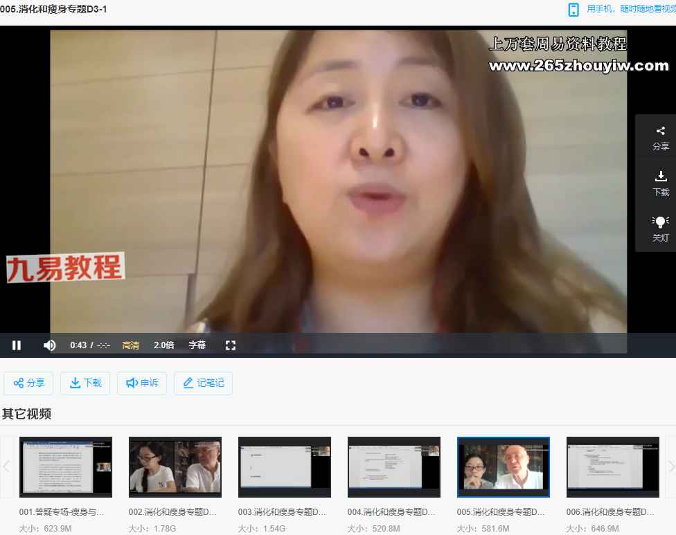 | ├──001.答疑专场-瘦身与肠道芳香照护.mp4 623.92M
