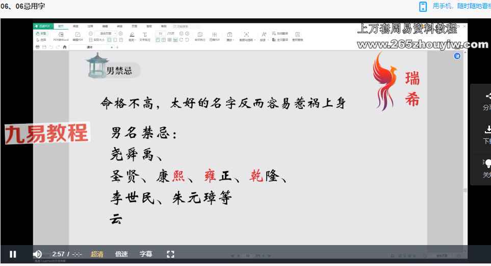 瑞希老师 名情财生肖姓名学系统课程视频41集,侧重于生肖的姓名学系统课。