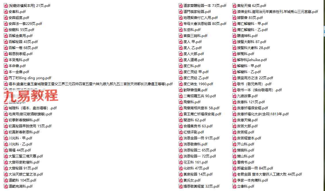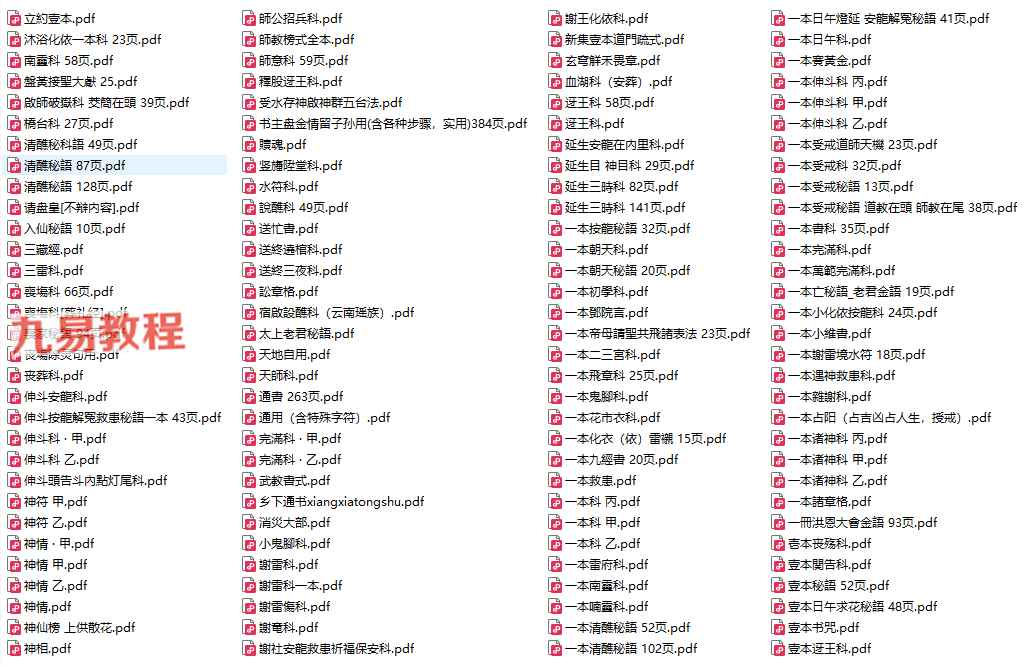 云南玉皇教263本pdf,内容非常丰富,收集的也很齐全。注意:为防止被网盘和谐,全套资料进行了二次压缩,解压密码:265zhouyi.com