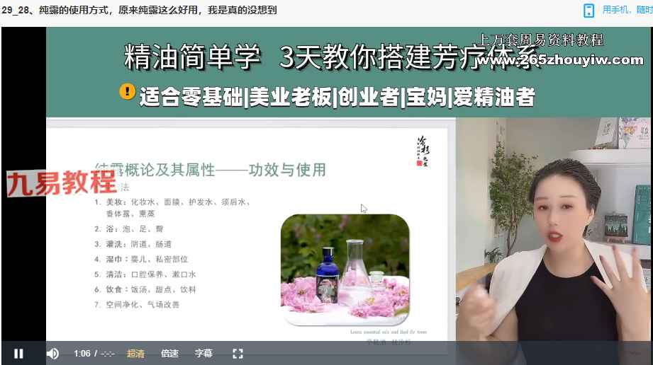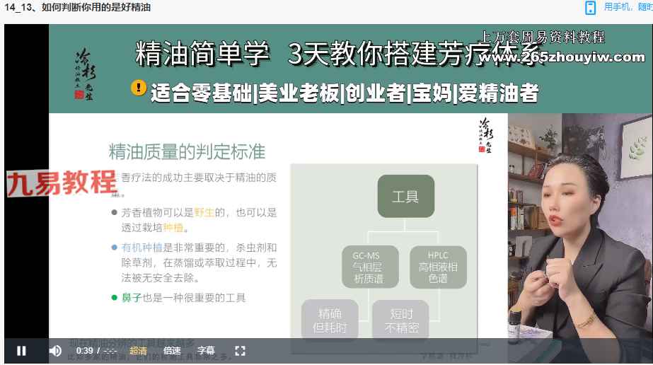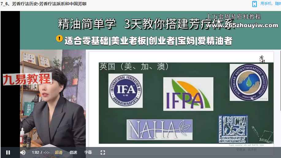 NAHA美国国际芳疗初阶认证班视频39集,讲解芳香疗法,精油的制作和使用等。