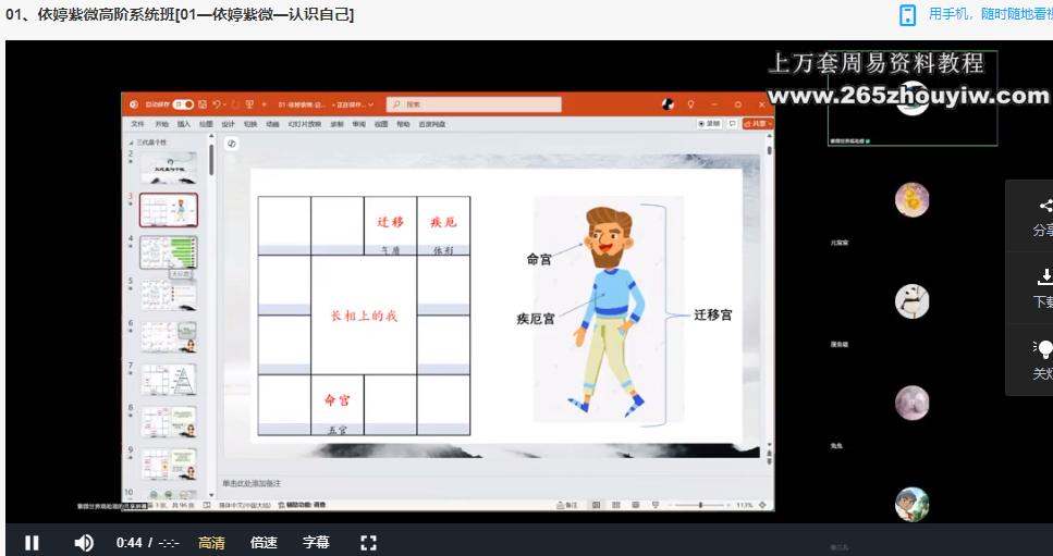 | ├──01、依婷紫微高阶系统班[01—依婷紫微—认识自己].mp4 223.16M