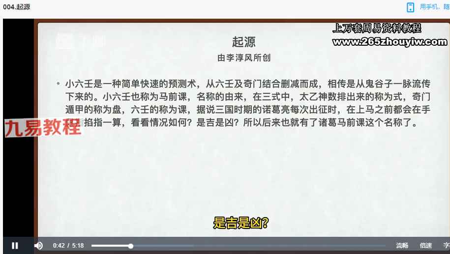 天机处小六壬诸葛马前课视频9集,每集几分钟不等,讲解小六壬快捷占卜法。
