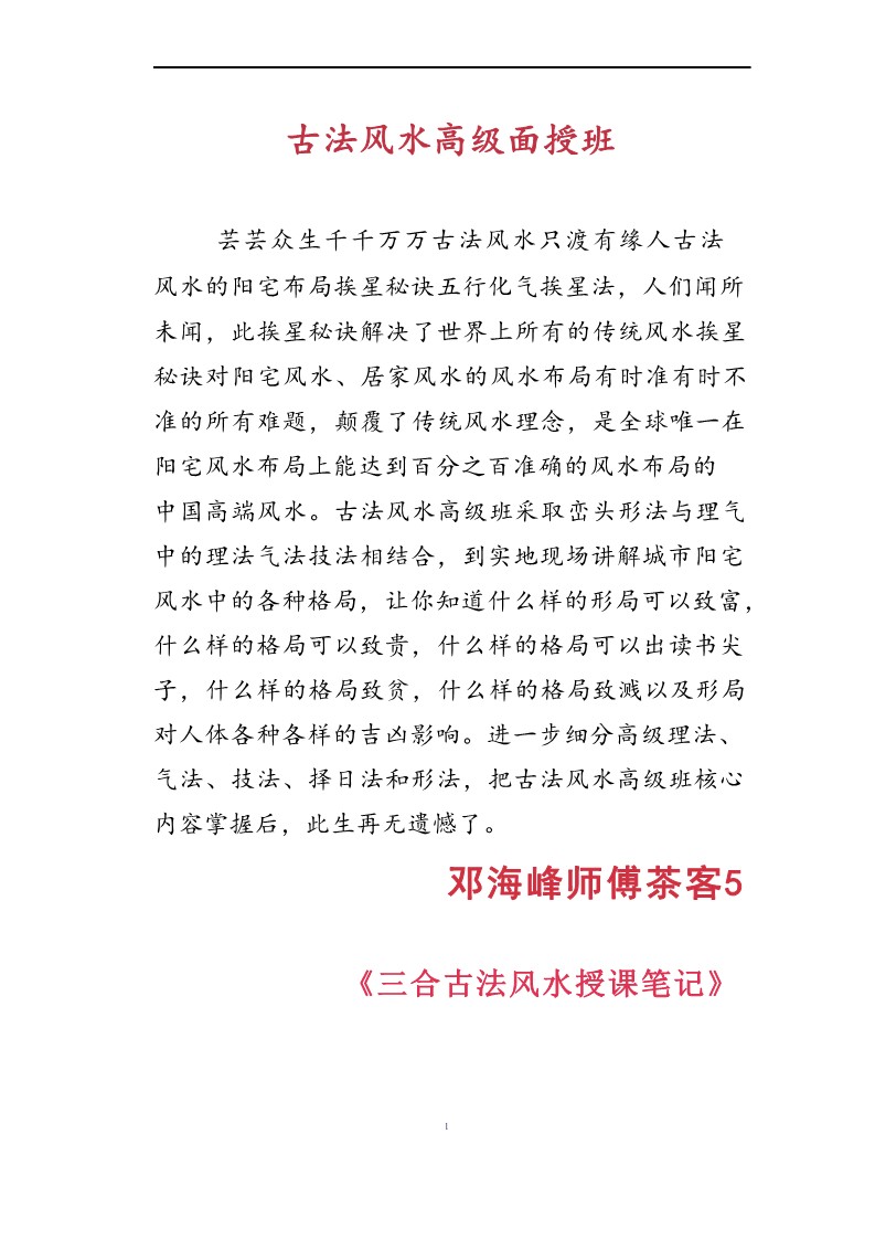 《邓海峰古法风水高级面授班》内部资料.pdf,206页。