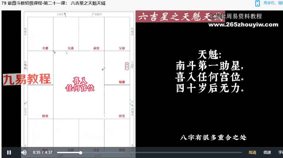 | ├──79 紫薇斗数初级课程-第二十一课: 六吉星之天魁天钺.mp4 7.42M