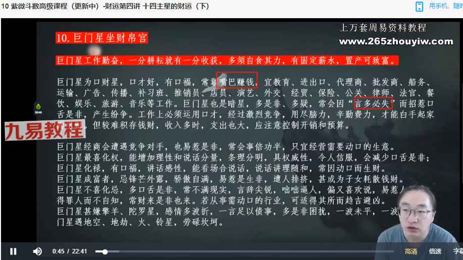 | ├──44 紫微斗数中级课程-第二十六课:巨门星.mp4 18.55M