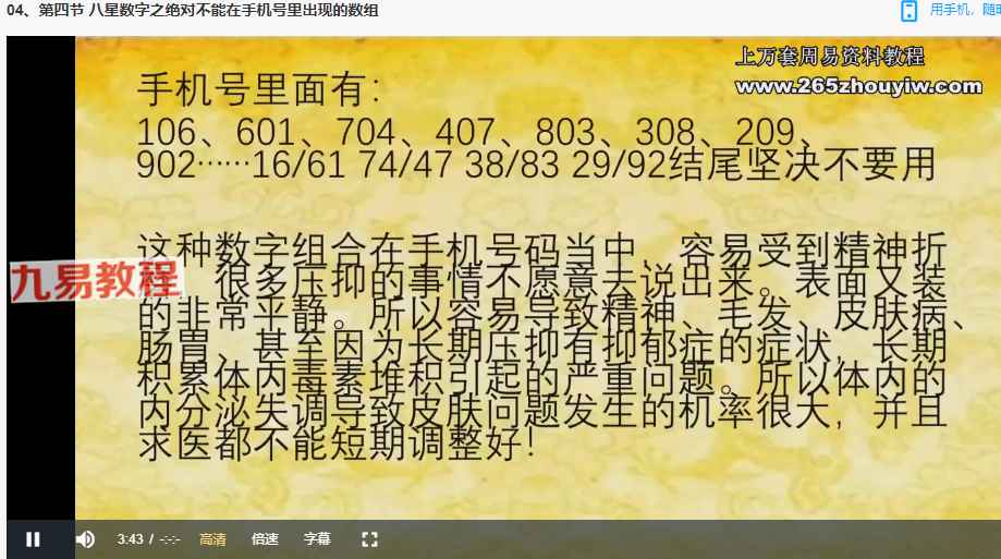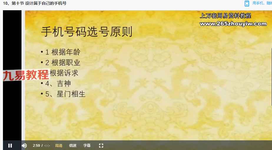 季晨语手机号码的解读以及设计课程视频10集,讲解八星数字的组合以及像意,数字奇门入门,奇门手机号的判断方法,设计优质手机号等。