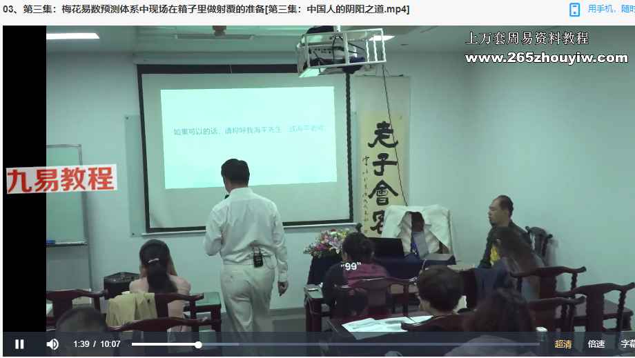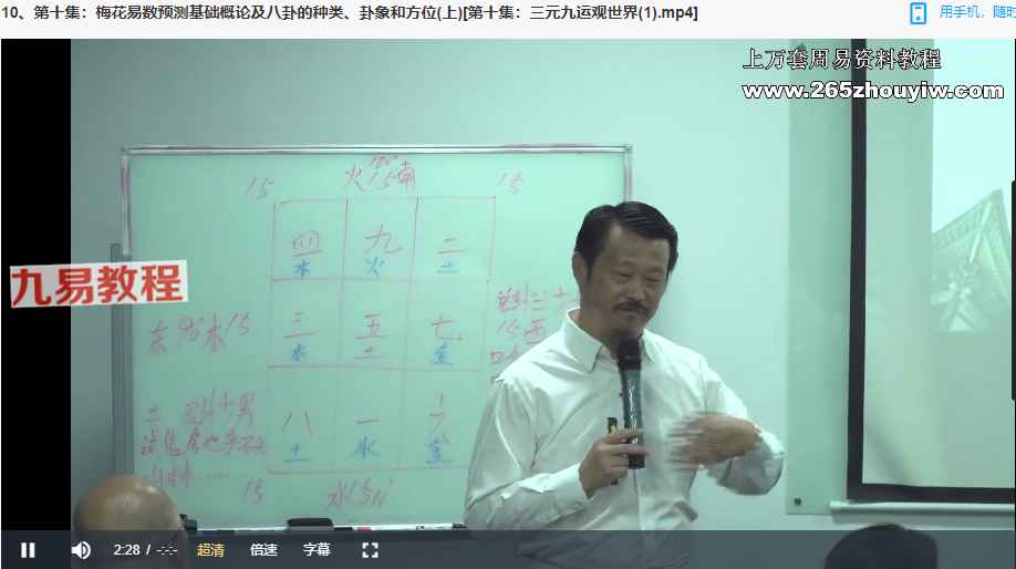 | ├──08、第八集:八卦九宫类象与三元九运及现场预测上课到场人数[第八集:五行与河图洛书之数.mp4].mp4 284.55M