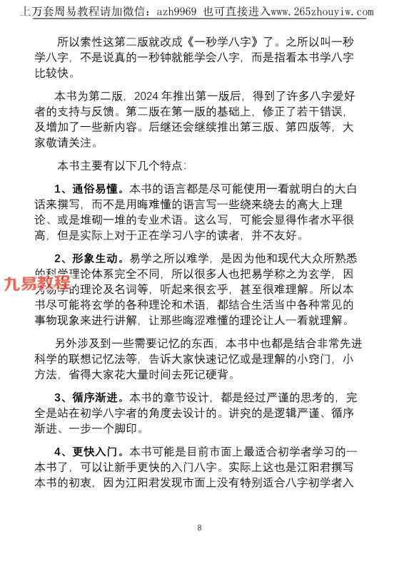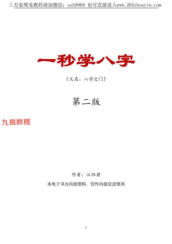 一秒学八字(第二版)江春义江阳君八字系统学习班核心教程248页.pdf。为第一版的加深版本,适合0基础的菜鸟学习。