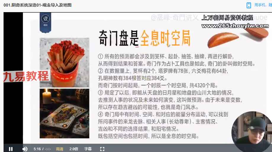 晟峰说易 _ 阴盘奇门系统深造(全阶课程)视频8集+课件pdf。非完整课程,可以说就带着你入了个门。后续课程能否搞到不清楚,介意的请不要下载。